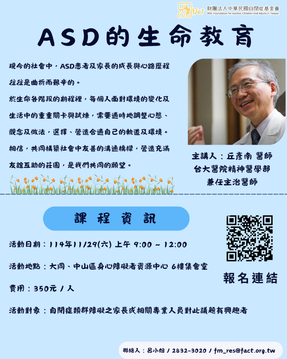 👨⚕️本次講座特別邀請台大醫院精神醫學部丘彥南醫師,提供在專業領域經驗及分享,誠摯邀請家長們熱切一同參與。