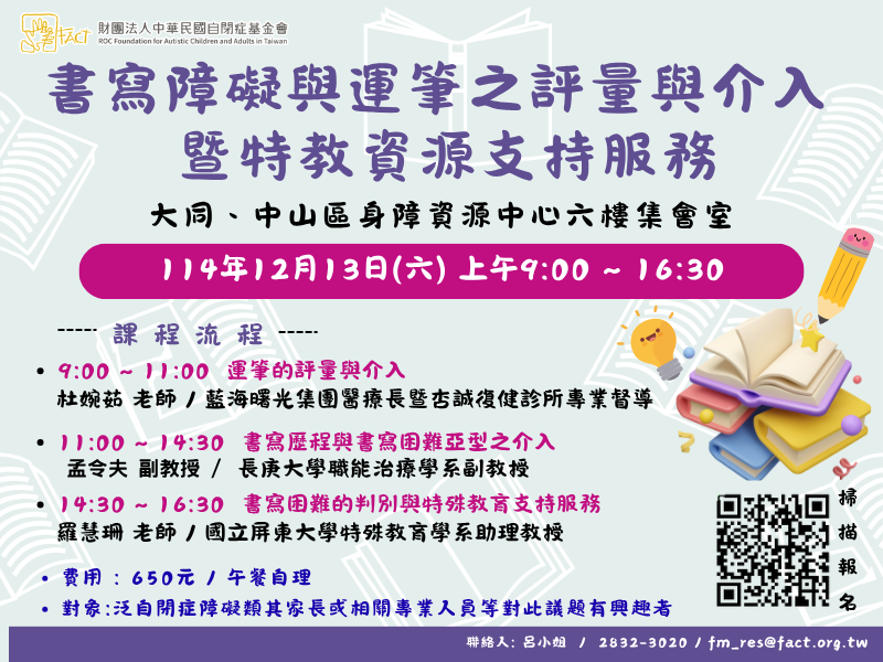 📍歡迎參加此課程,讓杜老師、孟老師、羅老師以理論結合實務,全方位解析書寫困難,並提供解決策略。也鼓勵您帶著您的問題來參加,我們將竭誠為您解答。