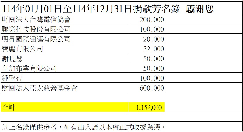 114.01.01至114.12.31勸募捐款徵信